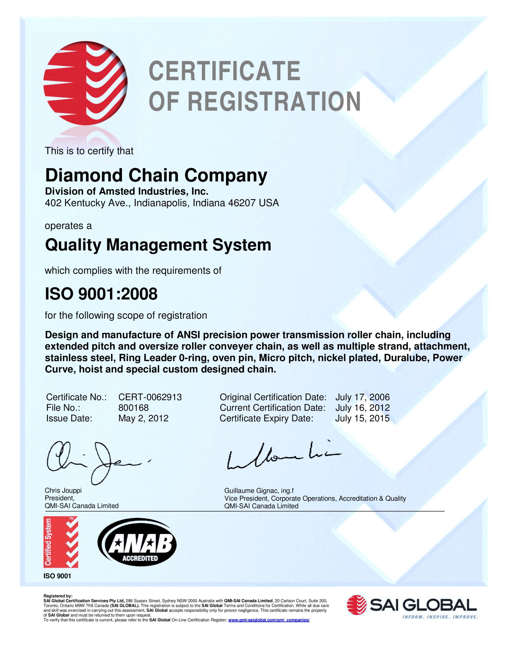 Στην Diamond Chain Company, οι αλυσίδες είναι το πάθος μας, η εστίαση μας, και το κάλεσμα μας. Η αδιάλειπτη επιτυχία μας βασίζεται στην δική σας επιτυχία και γι’ αυτό η προσοχή έχει δοθεί στην παραμικρή λεπτομέρεια όταν πρόκειται για την επιχείρηση μας.