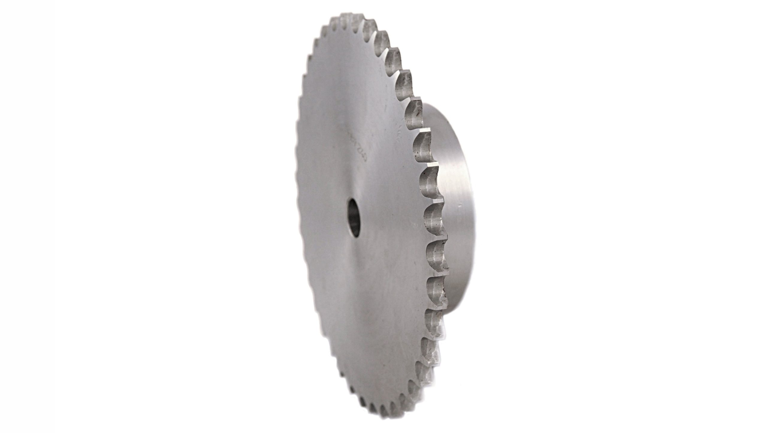 Αλυσοτροχοί (Γρανάζια) με ομφαλό (πλήμνη) για τις μονές αλυσίδες με πρότυπο κατασκευής κατά DIN 8187 (European Standard). To υλικό κατασκευής τους είναι το C42, και διαθέτουν πιλοτική τρύπα η οποία διαμορφώνεται ανάλογα με την διάσταση του άξονα που επιθυμούμε να τα προσαρμόσουμε.